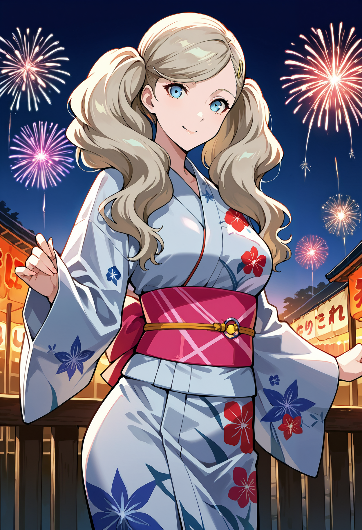 p5ann, takamaki anne, 金色头发, 长发, 双马尾, 刘海侧扫, 发夹,