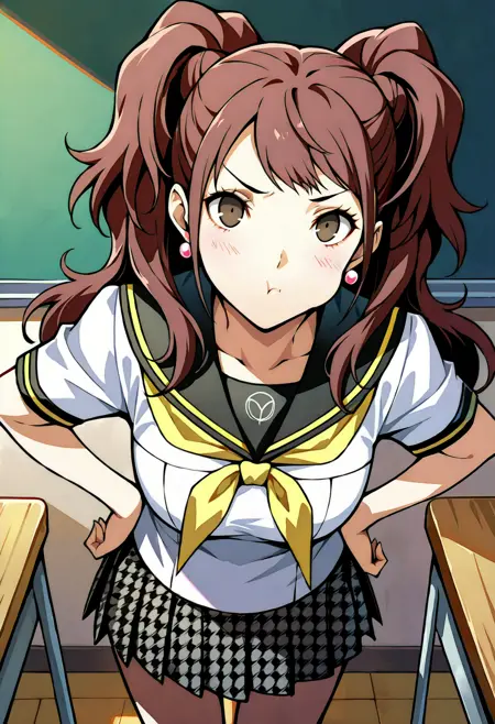 p4rise, kujikawa, rise, twintails, long hair, brown hair, pink earrings