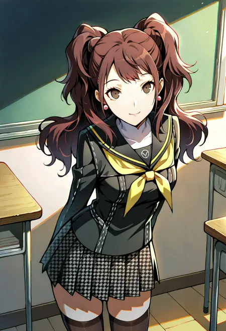 p4rise-winuni, yasogami school uniform, serafuku, long sleeves, black shirt, white turtleneck, school uniform, pleated skirt, houndstooth, thighhighs, zettai ryouiki,