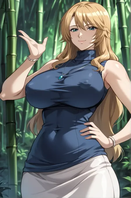 非常长的头发,金发,水蓝色眼睛,巨乳服装