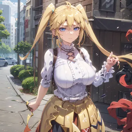 | トレーニングワード | Angelica_Ainsworthコピーしました! an anime image with a lady in a white shirt that has long hair, twintails, blue eyes, 1girl, blonde hair, long hair, breasts, large breasts, solo, skirtコピーしました! the anime has very nice and big boobs in this armor set image, 1girl, blonde hair, twintails, cosplay, blue eyes, armor, tattoo, breasts, long hairコピーしました! |