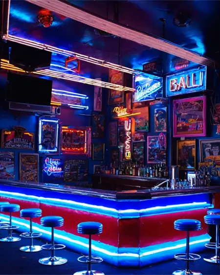 Neon Environments Model, is designed to generate visually striking images inspired by arcades, pubs, and other premises adorned with neon lights.