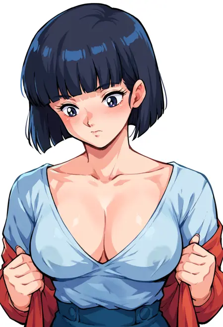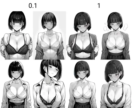 참고: 이 LoRA는 대상이 바라보는 대상(예: 신체 부위나 옷)을 자연스럽게 만지려는 경향을 추가합니다.