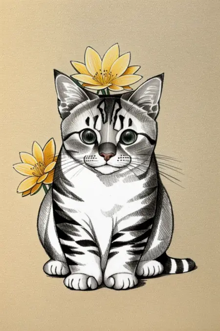 10エポック、1200ステップでトレーニングされたかわいい子猫モデルは、愛らしい猫のイラストを生成するために特別に設計された魅力的なAIモデルです。