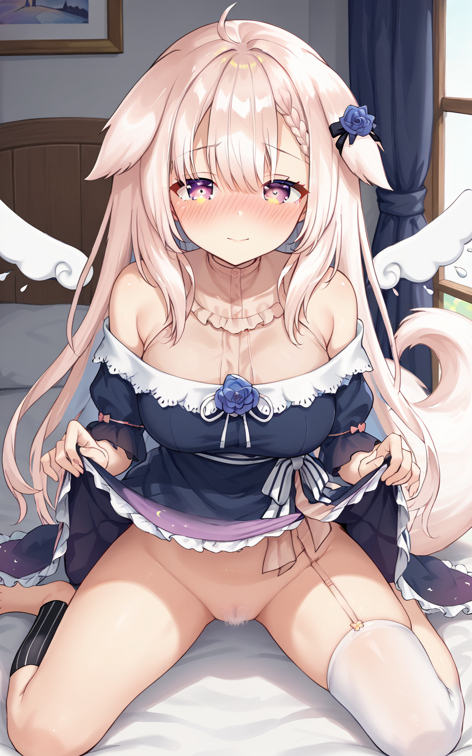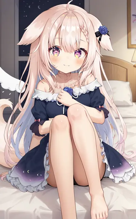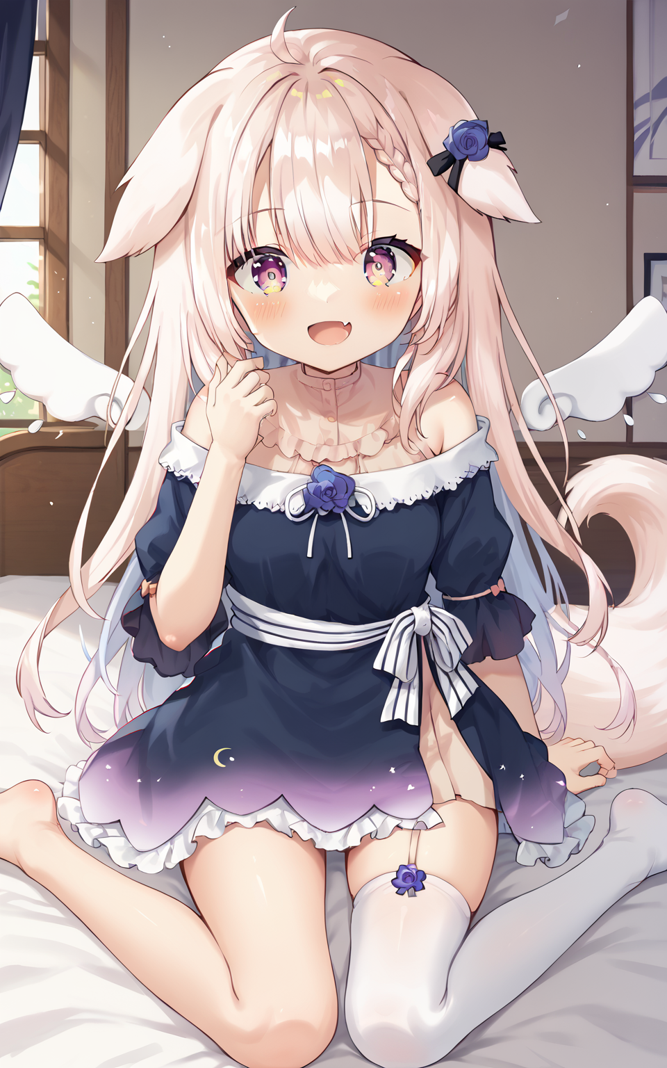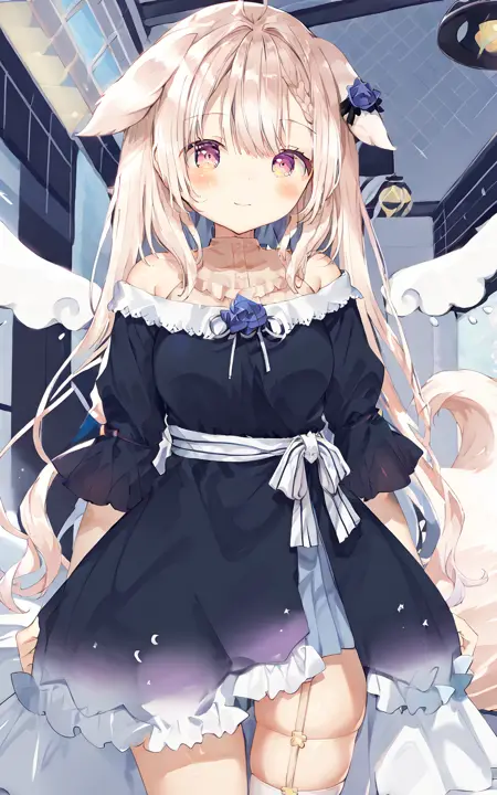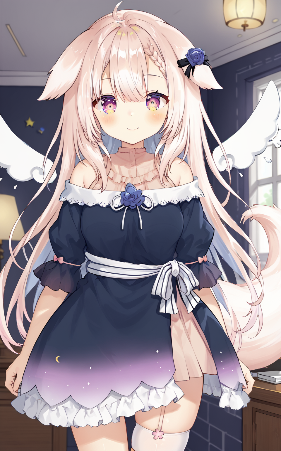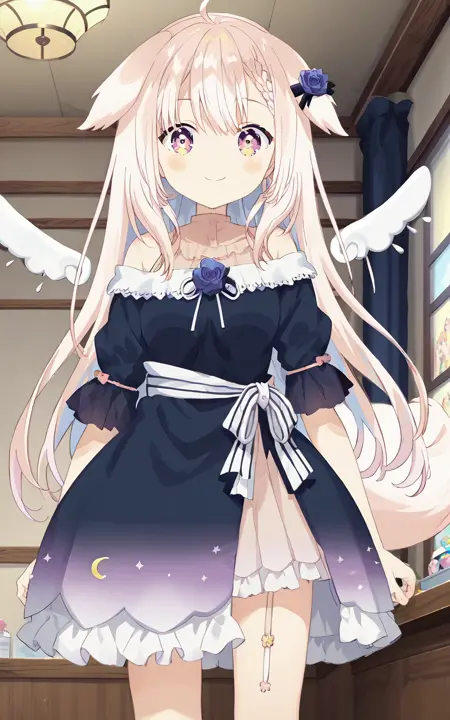 IonKurumi, long hair, virtual youtuber, blue dress, detached wings, dog tail,