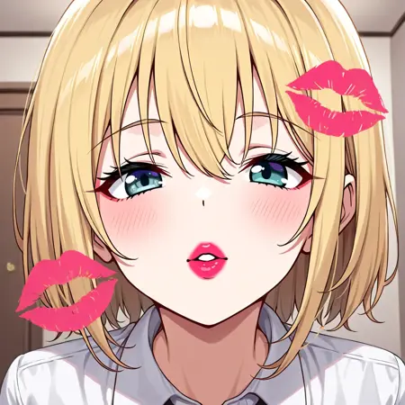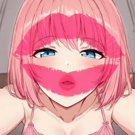 1girl, solo, general, pov, profile, close-up, face focus, kissmark, lipstick mark, incoming kiss, puckered lips, thick lips, pink lipstick, looking at viewer