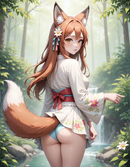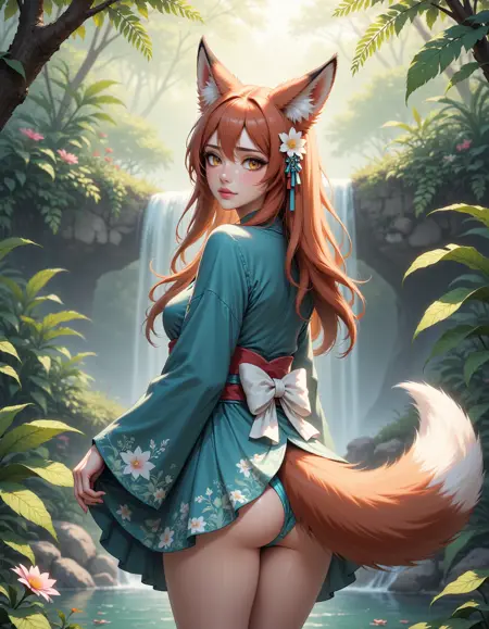 其他有效关键词包括提及她的狐狸耳朵和蓬松的狐狸尾巴,这也有帮助;你可以更改颜色,有时还能调整尾巴数量。但由于训练数据中多尾九尾狐的图像不足,效果可能不如预期理想。