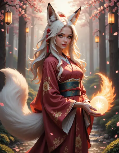 我在处理一个委托项目时发现,Flux 对九尾狐的概念表现不佳,因此我训练了这个 LoRA 来改进 Flux 的预训练概念。它符合我的需求,但仍然需要与 Flux 抗争以修正尾巴解剖结构和动物耳朵(不能额外添加人类耳朵)。它大约有 50% 的概率能正确把握概念和位置,这已经不错了。它可以生成多种风格的九尾狐或狐娘,包括动漫风和半写实风。九尾狐最多可有九条尾巴,因此如果不特别指定,系统可能会随机生成数量(有时即使指定了也会如此)。