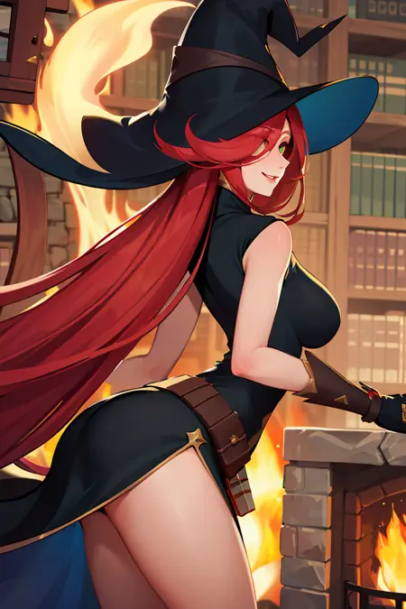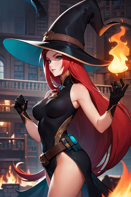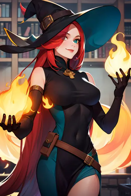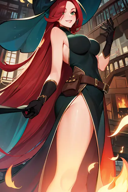 추가 프롬프트: 긴 빨간 머리, 검은 장갑, 불