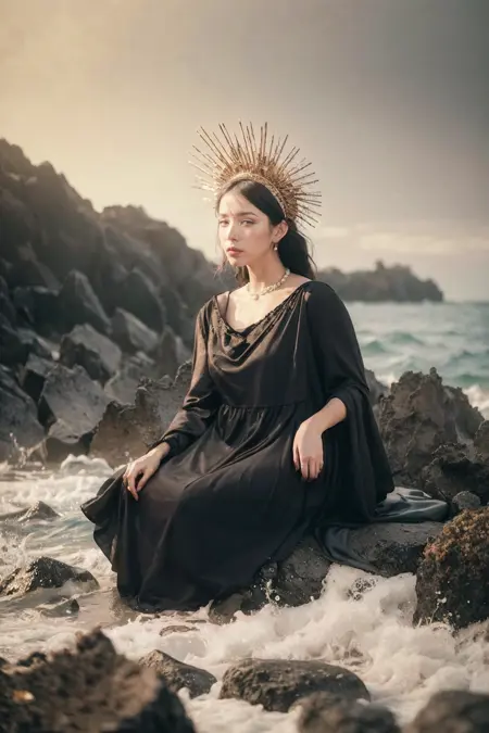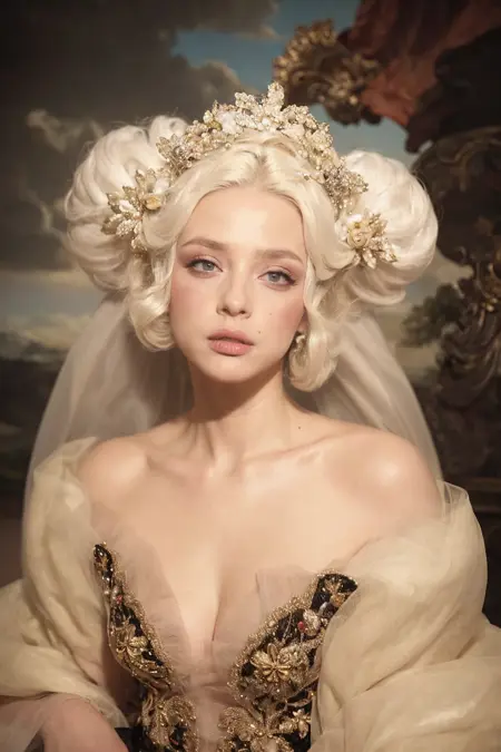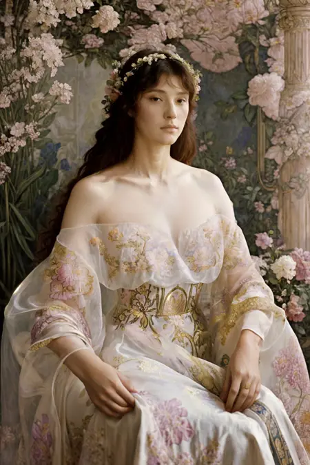 クラシックな肖像画のスタイルで撮影された写真で、ロマン主義や女性らしさなどの要素を加えたもの。