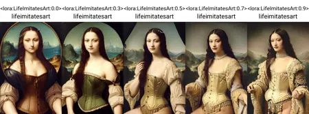 主なトリガー語は「lifeimitatesart」です。 その他のトリガー語はLoRAのメタデータ(Automatic1111インターフェースの情報アイコン)で確認できます。