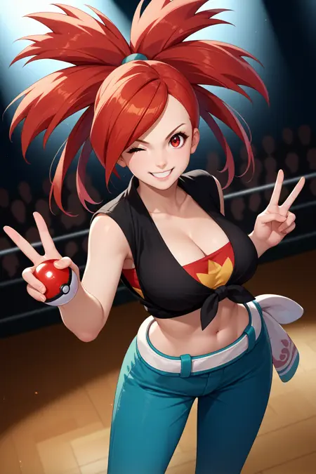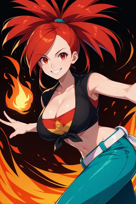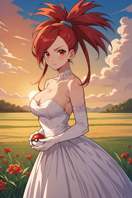 Flannery from Pokemon Ruby and Sapphire, as well as their remakes. Trained on Pony Diffusion V6 XL. Tested at 0.8-1.0 strength.