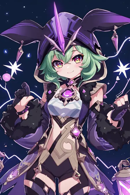 | 训练词汇 | zzElectroCicin, 1girl, short hair, green hair, 已复制! zzElectroCicin, 1girl, short hair, green hair, hood, fur trim, long sleeves, mask, cloak, hooded cloak, gloves, 已复制! zzElectroCicin, 1girl, short hair, green hair, hood, fur trim, long sleeves, mask, cloak, hooded cloak, gloves, lantern,已复制! |