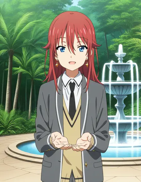 Minato(Pleiades) 1boy,solo, 빨간 머리, 파란 눈, 귀걸이, 애니메이션 컬러링, 눈 사이의 머리카락, 앞머리,