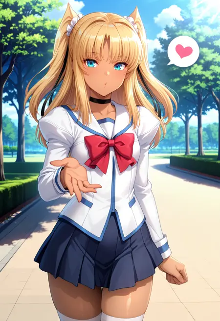 Recommend Prompts (clothing②):choker, red bow, school uniform, skirt, thighhighs,