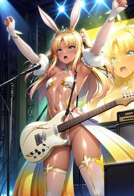 Recommend Prompts (clothing③):tlwy idol clothes, dress, revealing clothes, detached sleeves, elbow gloves, fingerless gloves, white thighhighs