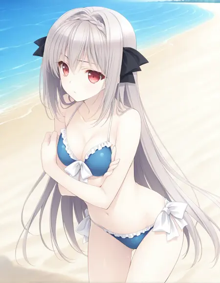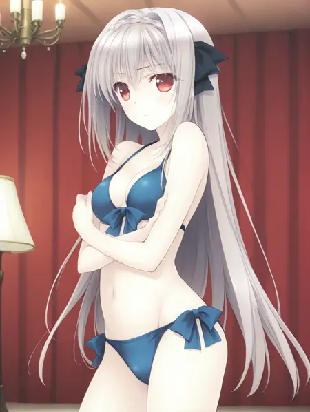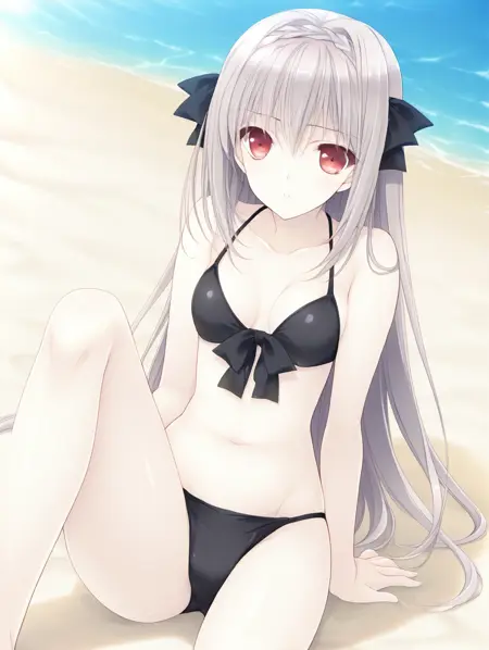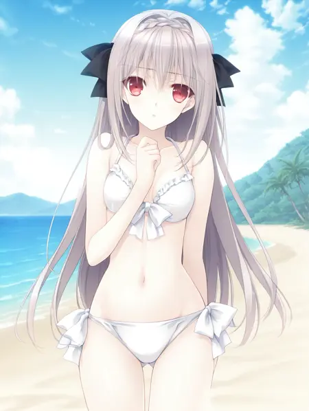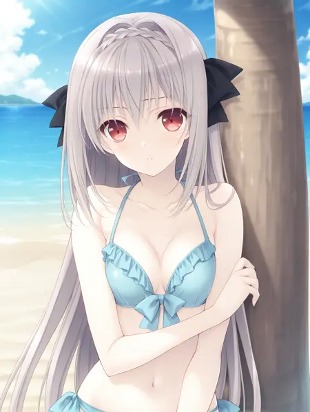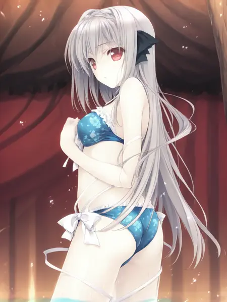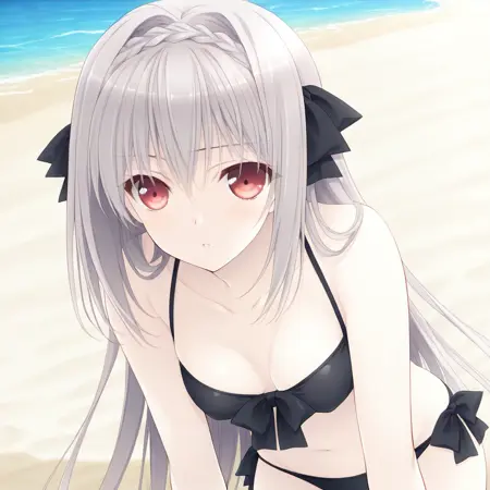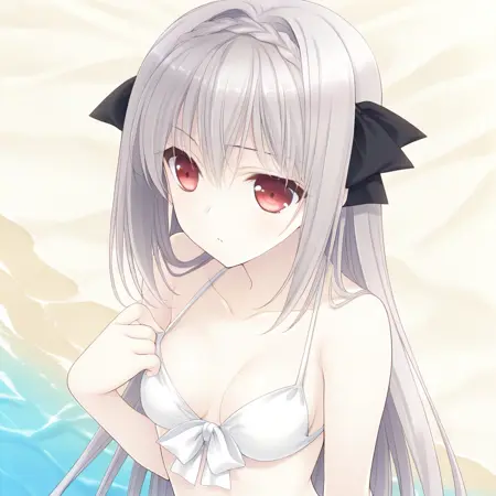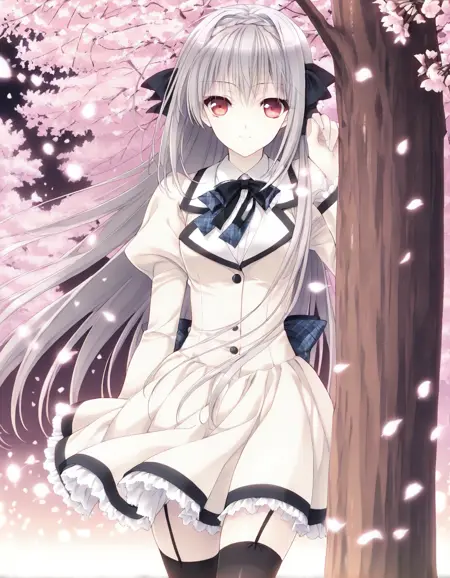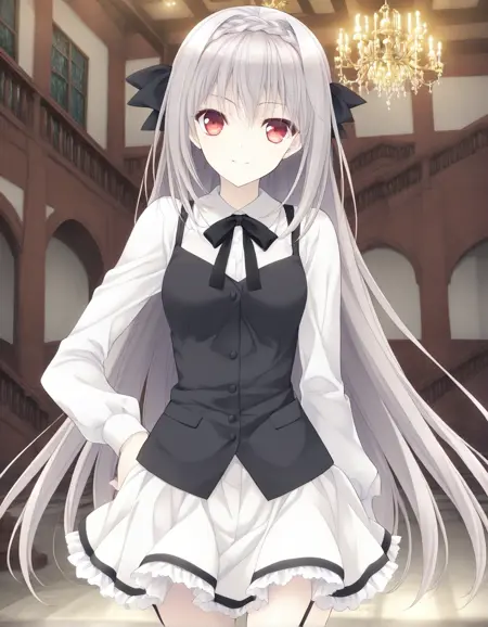 触发词:Sakurakouji Luna,长发,1girl,红眼,单人,灰发,辫子,发带,蝴蝶结