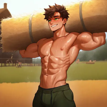 프롬프트: Alex, 갈색 머리, 단발, 초록색 눈, 초록색 재킷