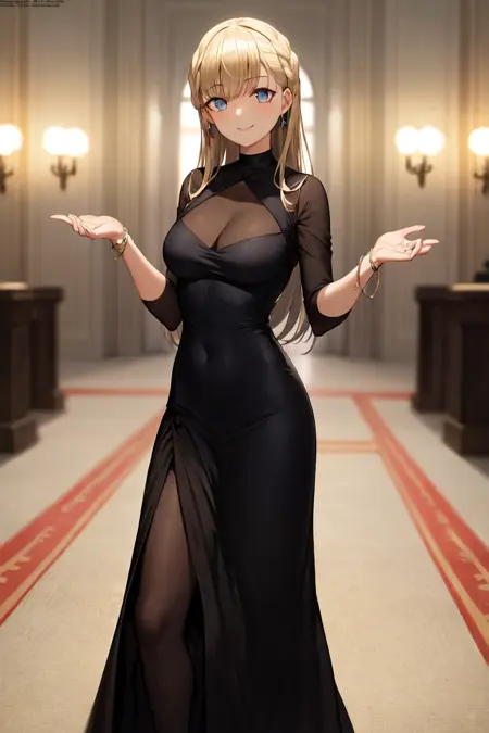 For her outfit try the following prompts: