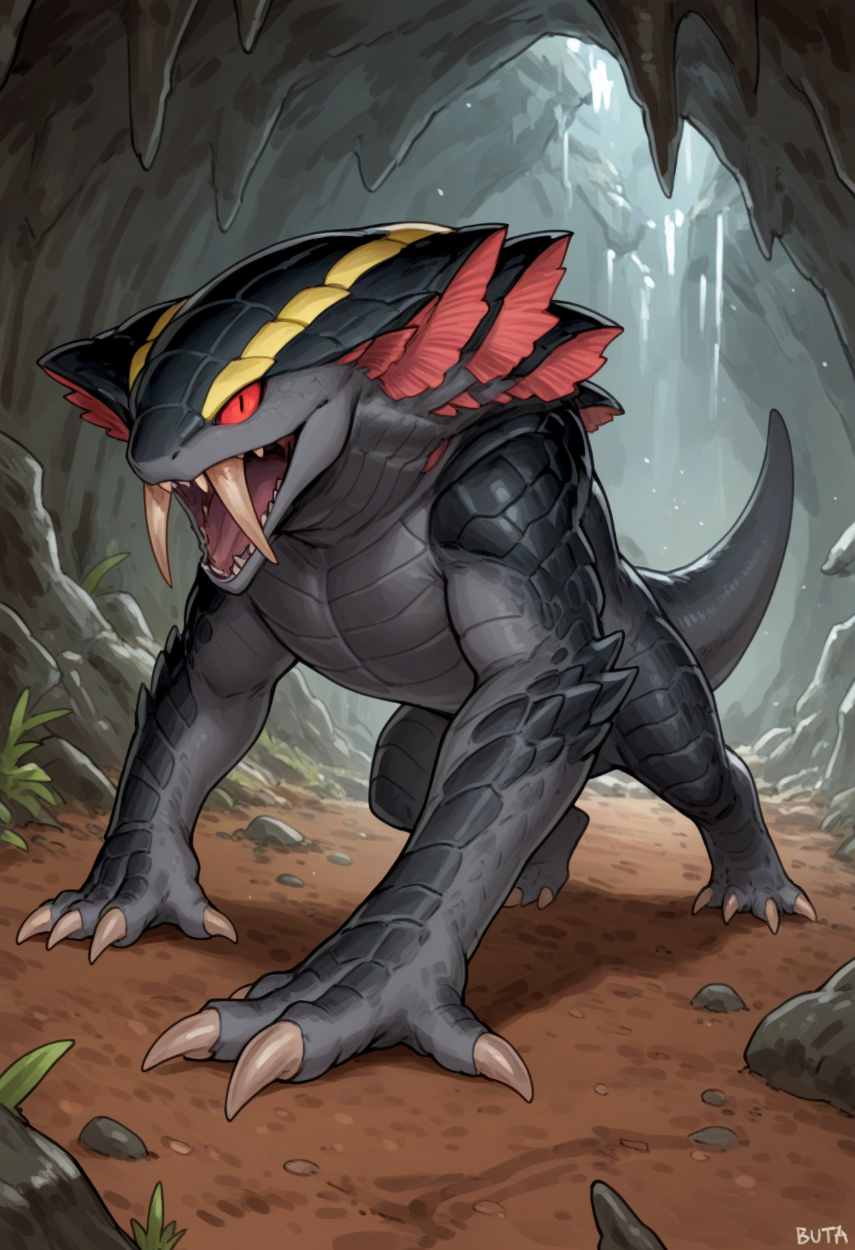 권장 긍정적 키워드: girros, scalie, fangs, tail, red eyes, yellow accents