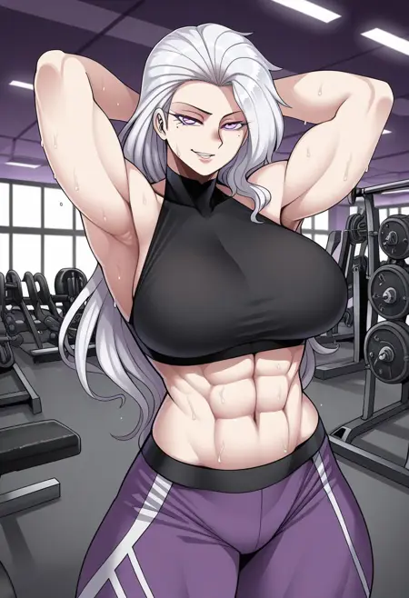 FulgrimaXL, long white hair, purple eyes, make up, eye shadow, mole under eye, large breasts,