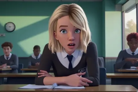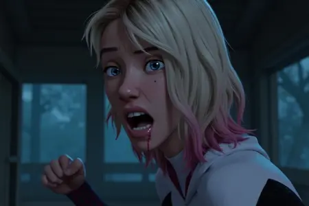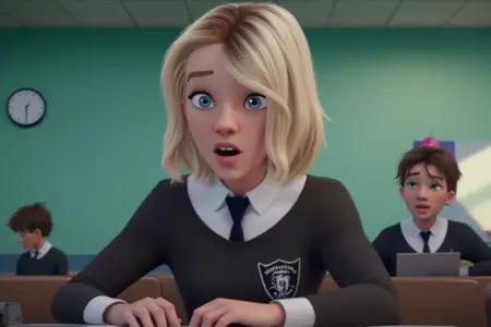 スパイダーバース映画のグウェン・ステーシーのマスクを外したLoRA。