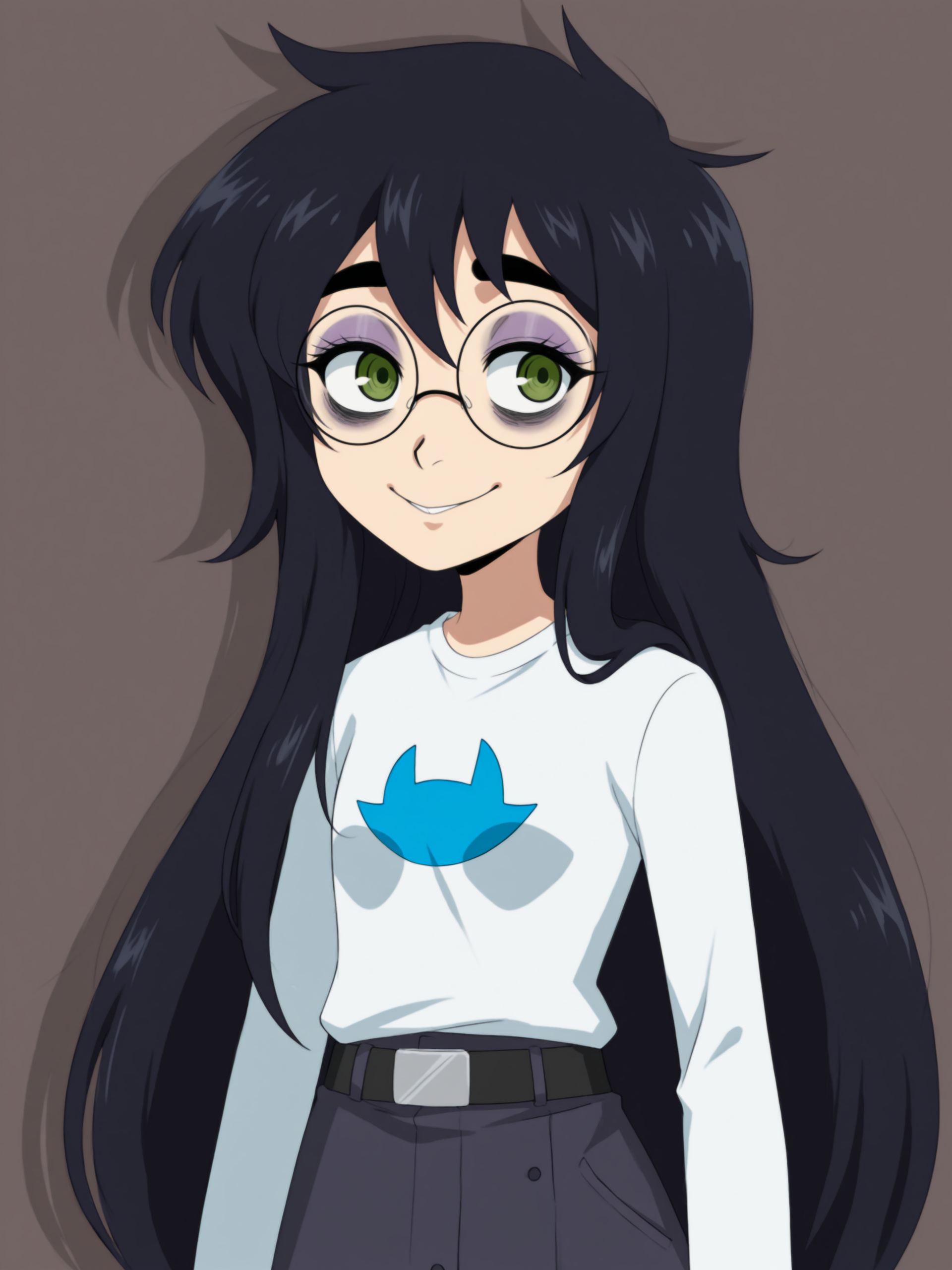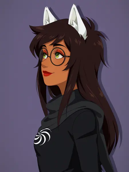 관련 프롬프트: 검은 머리, 긴 머리, 녹색 눈, 안경, 둥근 안경, 돌기치, 동물 귀