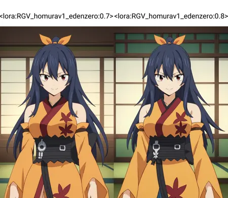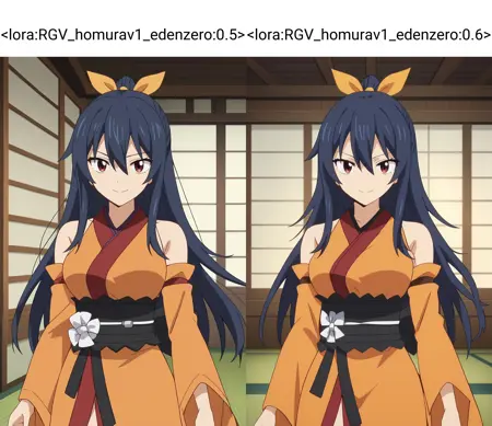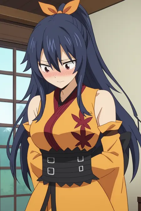 1girl, solo, long hair, breasts, black hair, ponytail, hair between eyes, blue hair, hair ribbon, homura_kogetsu