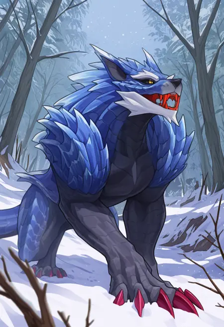 Recommended positives: lunagaron, scalie, dark navy blue scales, tail, black canid nose, grey accent scales,
