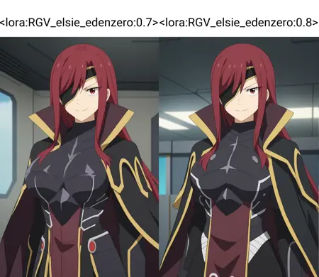 1girl, solo, breasts, long hair, red eyes, red hair, eyepatch, elsie_crimson
