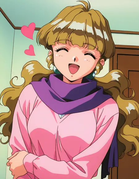 Kai_Fubuki, 1girl,solo,long hair, blonde hair, blue eyes, wavy hair, ponytail, bangs, medium breasts, 1990s (style), anime coloring,