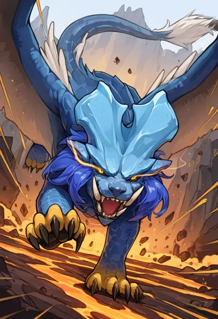 Teostra 장점: mhtota, 파란 눈, 빨간 비늘