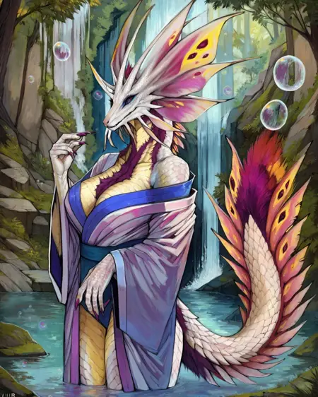 通用正面关键词:mizutsune,蓝眼睛,翘起的尾巴*,胸部绒毛**