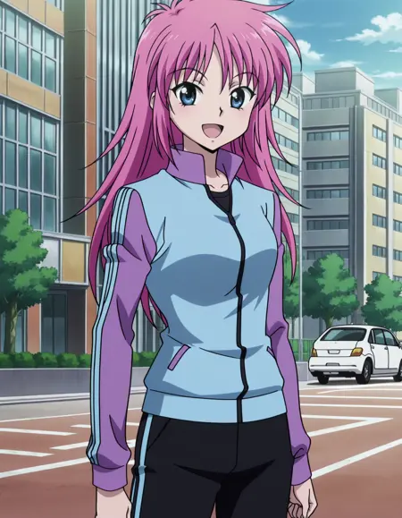 关键要素: 1girl,粉发,蓝眼