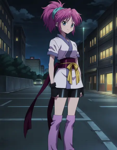 马尾辫,短发,日本服饰,骑行短裤,黑色露指手套,腿套,腰带,发带