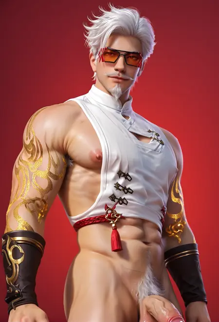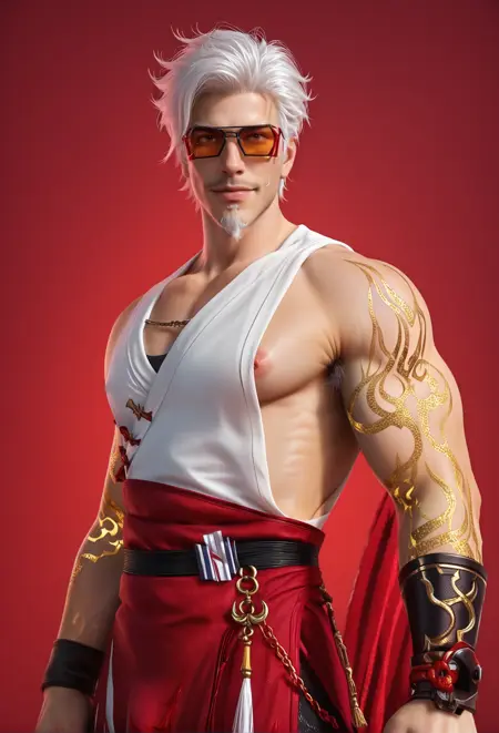 jicanghai, 흰 머리, 팔 문신, 소매 없음,
