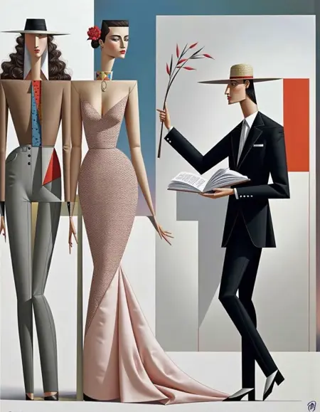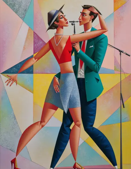 「スレンダー・キュビズム」は、長く細長いフォルムという概念と、キュビズムの断片的な幾何学的要素を融合させたスタイルです。このスタイルは、簡素化された背景と調和する独自で興味深いキャラクターを生み出すことを目的としており、色と形の魅惑的な融合を実現します。