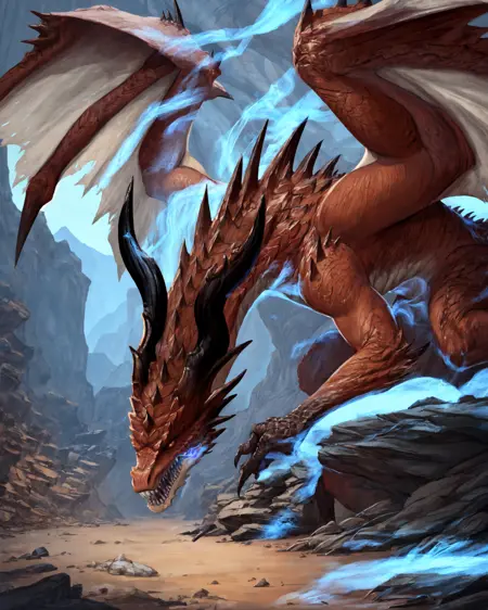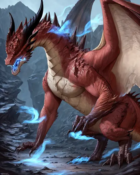 권장 긍정적 태그: mhsfjva, 오렌지색 눈, 날개, 가시 꼬리, 푸른 빛나는 입*, 아우라*, 마법*