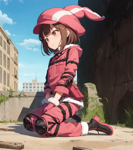 llenn, jacket, pants, knee pads, camouflage, fur trim, gloves, black boots, straps, cross-laced footwear, short hair, animal hat