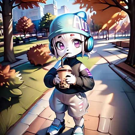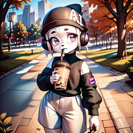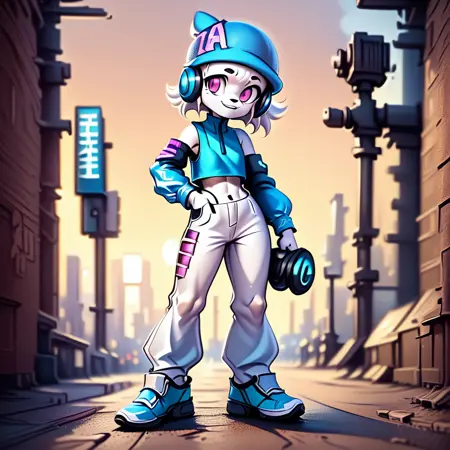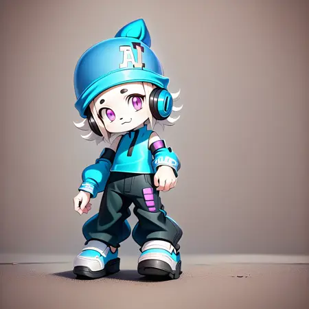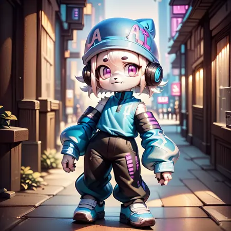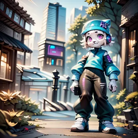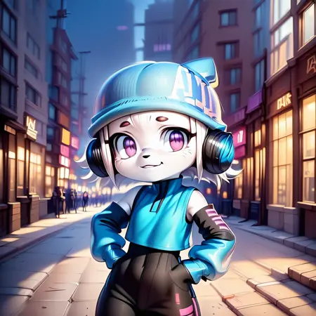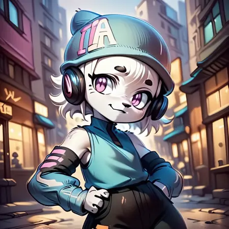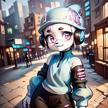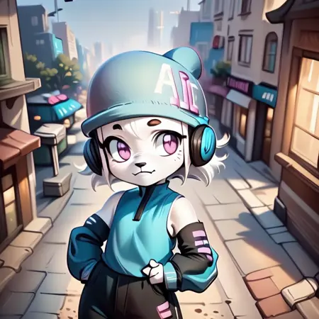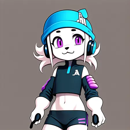 ai-chan, white fur, purple eyes, 1girl, hat, headphone