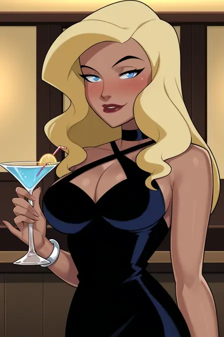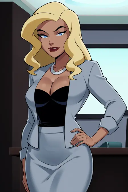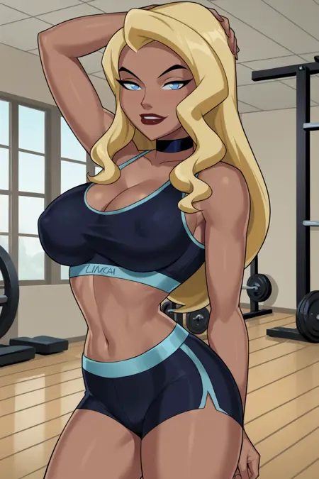 기본 프롬프트: dinah lance, 긴 머리, 금발, 파란 눈, 검은 피부를 가진 여자