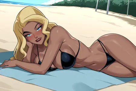 基础提示:dinah lance,长发,金发,蓝眼睛,深色皮肤女性