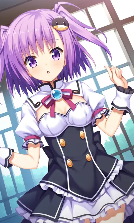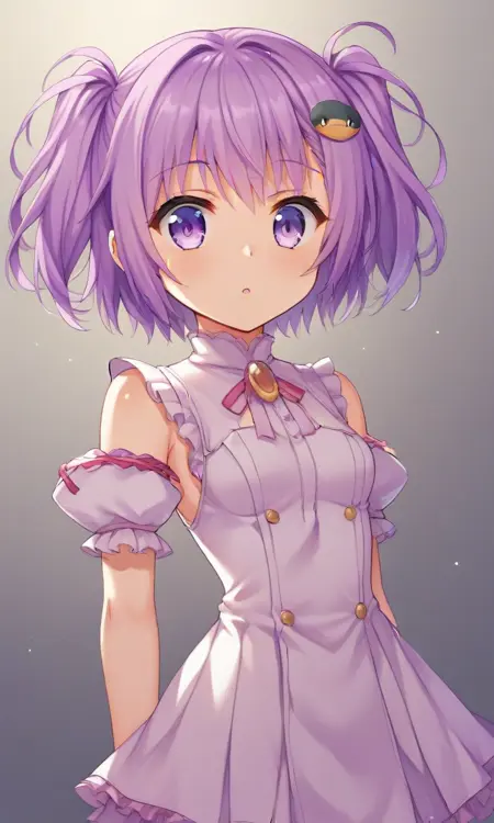 Tsubame Tachibana, purple hair, short hair, violet eyes, two side up, hair ornament,