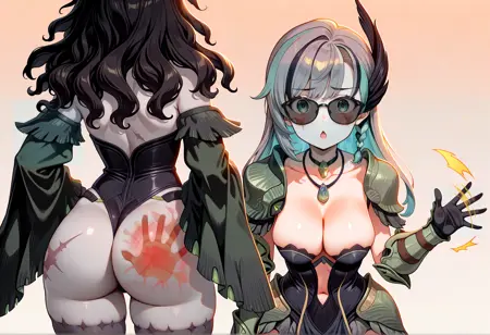 注目のタグ: 色付きの肌、灰色の肌、緑の目、黒髪、長髪、巻き髪、帽子、バイコーン、傷跡、縫合跡、レオタード、胸元、外れた袖、広い袖、手袋、不対称な脚衣、太ももブーツ、ハイヒール