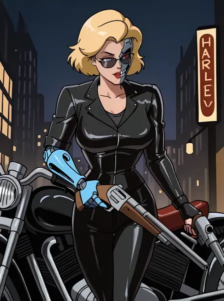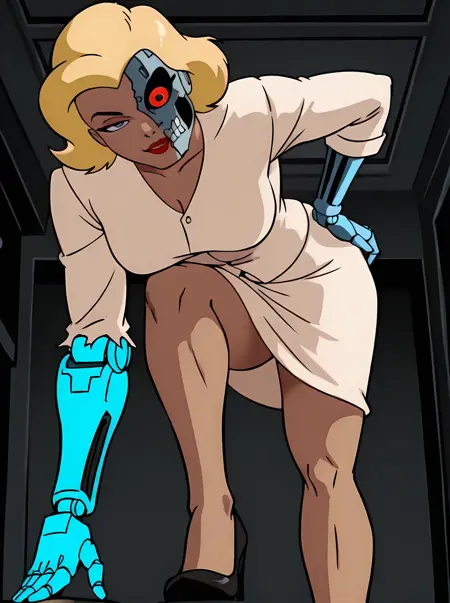 ランダは、『バットマン・ザ・アニメーテッド・シリーズ』の2部構成エピソード「鋼の心」に登場する「複製体」(人間を模倣・置き換えるために設計されたロボット)です。このLoRAには、エピソード内で彼女が着用した2つの衣装が含まれています。さらに、エピソードのクライマックスで片腕と顔の半分が焼け落ち、その下にターーミネーターのようなロボット型内骨格が現れる「戦闘ダメージ」の外見を再現することも可能です。