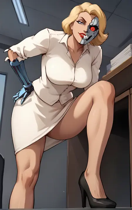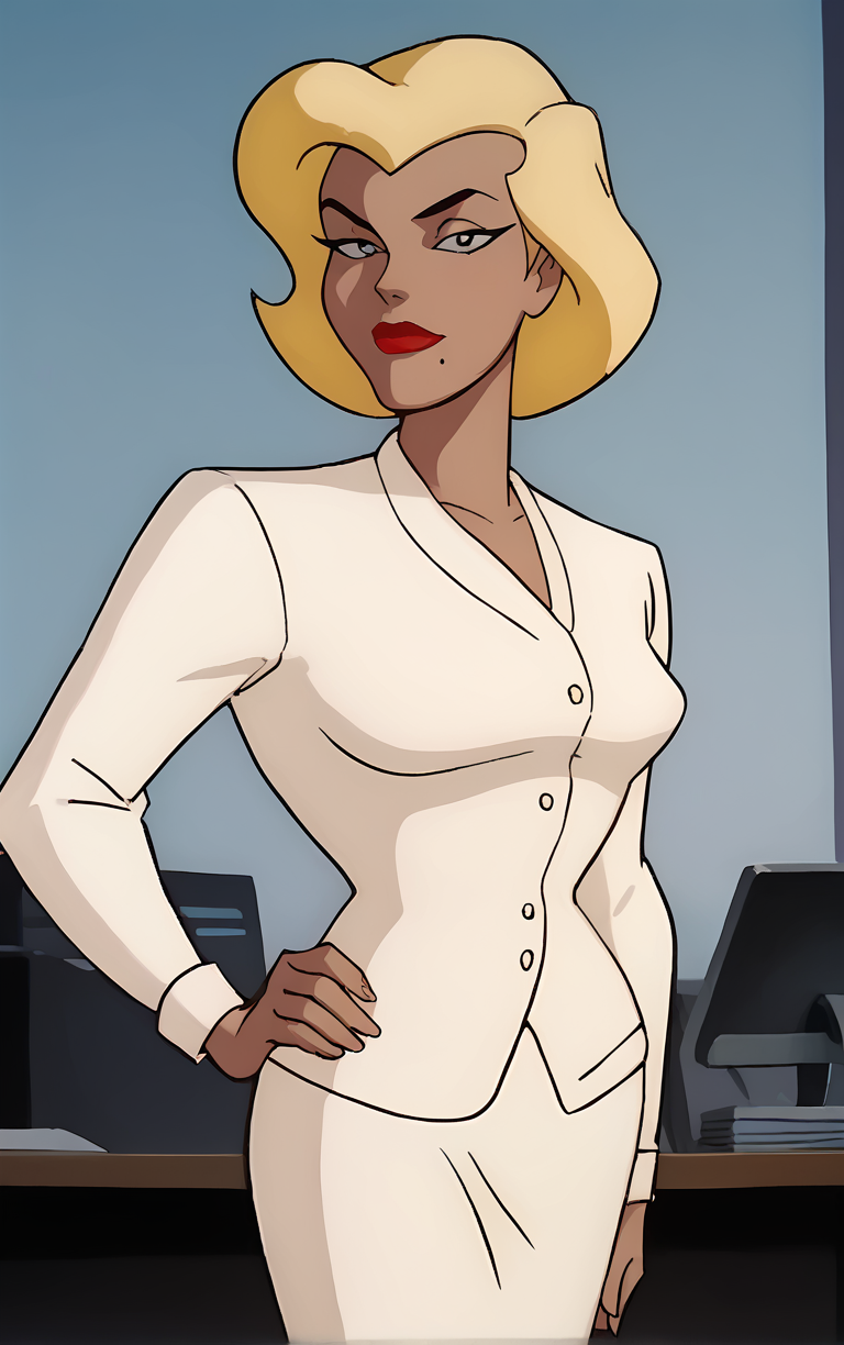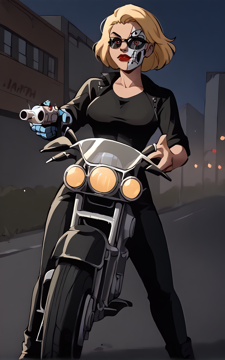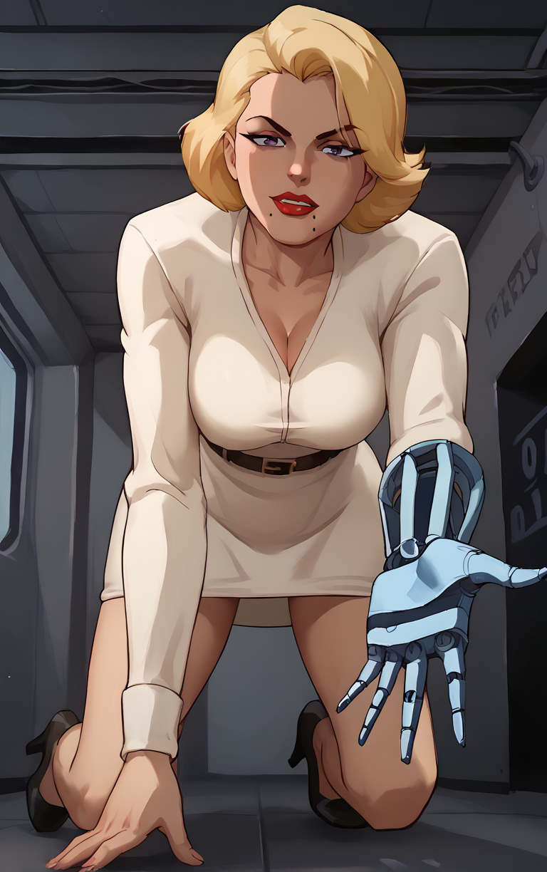 兰达是动画剧集《蝙蝠侠:动画系列》两集故事《钢铁之心》中的“仿生人”(设计用于模仿并取代人类的机器人)。该LoRA包含她在剧中所穿的两套服装。此外,你还可以重现她在剧集高潮时的“战斗损伤”外观——一只手臂和半边脸部被烧毁,露出下方类似终结者的机械骨架。