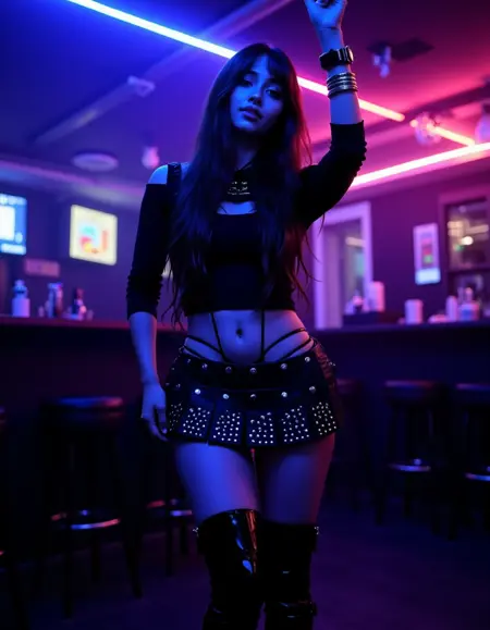 검은 색 단바지, 검은 치마, 검은 모노키니, 검은 상의, 검은 부츠