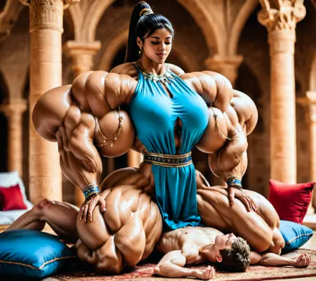트리거 단어 사용: "근육질인 소녀", "초근육질", "피트" 등.