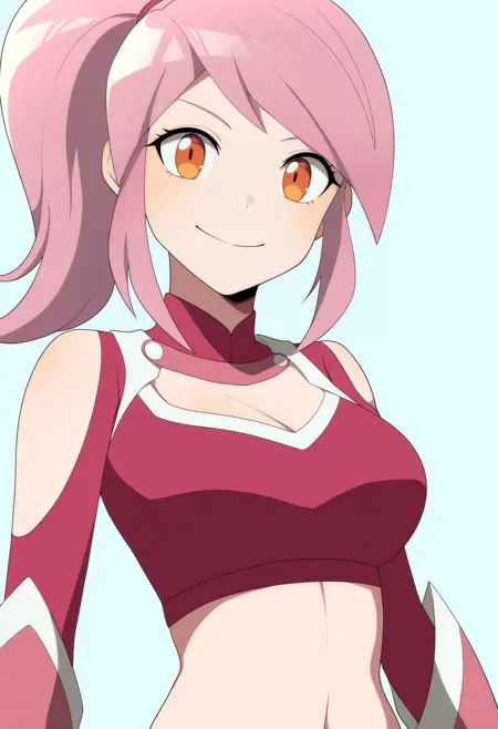 Basic prompts : 1girl, lavana, pink hair, ponytail, long hair, orange eyes