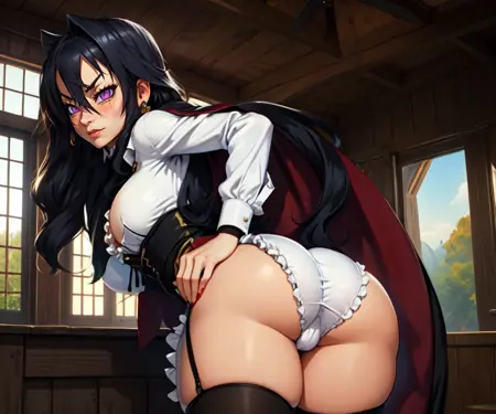 DroDres,珠宝,斗篷,长袖,中心荷叶边,衬衫,白色衬衫,胸下设计,大腿长筒袜,黑色束腰,